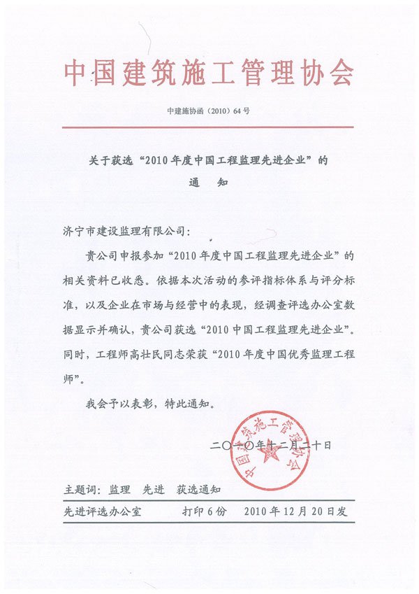 榮獲“2010中國工程監(jiān)理行業(yè)先進企業(yè)”而未出席會議的有: