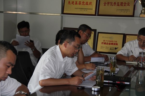 九月三日,我公司2011年度上半年安全與質量會議在公司會議室召開。總工辦主任李樹玉結合上半年工地檢查的情況,通報了目前在建工程質量與安全方面存在的問題及下一步需要項目部注意的事項。公司領導韓經理向各總監介紹了公司新的考核計分辦法,杜經理對目前財務情況作了通報。分公司解西民經理及經營部徐雁主任分別代表分公司、公司各部門作了發言。公司領導對獲得“綜合管理優秀獎”的杜偉項目部頒發獎牌及獎金。杜偉總監對項目部管理談了自己的心得體會。