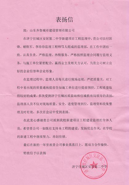 2018年2月5日,濟寧任城區(qū)安居第二中學新建項目負責人謝主席前來我公司,為我公司送來一面印有“用心保證質(zhì)量 創(chuàng)新服務業(yè)主”的錦旗。表彰我公司以付國鋒、褚鐵軍、李珍珍監(jiān)理工程師等人組成的監(jiān)理部在濟寧任城區(qū)安居第二中學新建項目工程監(jiān)理中,對工程認真負責、嚴格監(jiān)理、熱情服務的態(tài)度。宋德望副總經(jīng)理、杜紹坤副總經(jīng)理接待了謝主席,表示能夠得到領導的肯定,是對我們公司監(jiān)理人員的高度評價,今后監(jiān)理部的人員將以更加飽滿的熱情投入到工程后期的工作中去。
