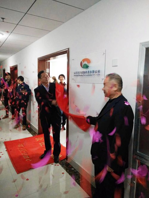 10點(diǎn)58分,華寧檢測公司法人代表王華、董事韓曉東為公司揭牌,隨著紅色帷幕緩緩拉開,華寧設(shè)備檢測有限公司新的征程正式啟航。