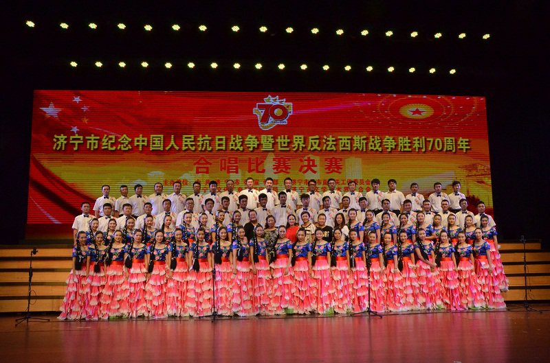 在全國(guó)上下隆重紀(jì)念抗日戰(zhàn)爭(zhēng)勝利70周年活動(dòng)之際,8月30日下午,由中共濟(jì)寧市委宣傳部、市直機(jī)關(guān)工委、市文廣新局、市文聯(lián)等單位聯(lián)合在聲遠(yuǎn)舞臺(tái)舉辦了濟(jì)寧市紀(jì)念中國(guó)人民抗日戰(zhàn)爭(zhēng)勝利暨世界反法西斯戰(zhàn)爭(zhēng)勝利70周年合唱比賽,以此弘揚(yáng)愛(ài)國(guó)主義的優(yōu)秀傳統(tǒng),培養(yǎng)全市廣大干部職工愛(ài)黨愛(ài)國(guó)的偉大情懷。市有關(guān)領(lǐng)導(dǎo)出席本次活動(dòng)。此次合唱比賽以系統(tǒng)為單位,共分16個(gè)方隊(duì),每個(gè)方隊(duì)身著統(tǒng)一服裝,用最具特色的方式歌唱祖國(guó),緬懷歷史,一曲曲激情飛揚(yáng)、氣勢(shì)磅礴的經(jīng)典紅歌,讓廣大職工再次感受到了革命先輩們沖鋒陷陣的豪情和一腔愛(ài)國(guó)情,贏得了現(xiàn)場(chǎng)觀眾陣陣掌聲。