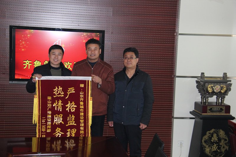 今天上午,梁山泊水庫綠化指揮部劉局長一行四人來到我公司,為我公司送來錦旗,錦旗上書:“嚴格監(jiān)理,熱情服務(wù)”八個大字,以表彰我公司駐該工程程德剛監(jiān)理部的優(yōu)秀表現(xiàn)。劉局長對項目部予以高度評價:齊魯管理公司派駐的監(jiān)理人員素質(zhì)高、責(zé)任心強、工作到位,做好了工程的質(zhì)量管控,監(jiān)理工作在各個環(huán)節(jié)起到了關(guān)鍵作用,非常期待與齊魯管理公司進一步進行合作。齊魯管理宋德望副總經(jīng)理接待了劉局長一行。