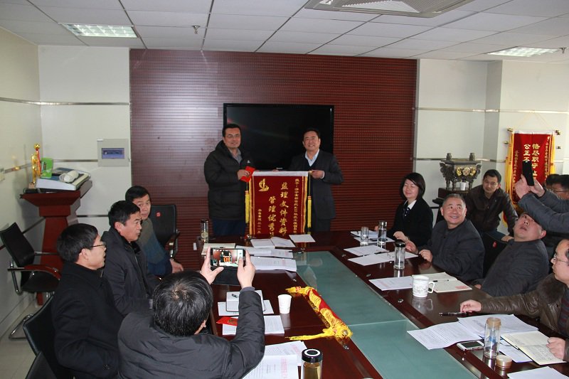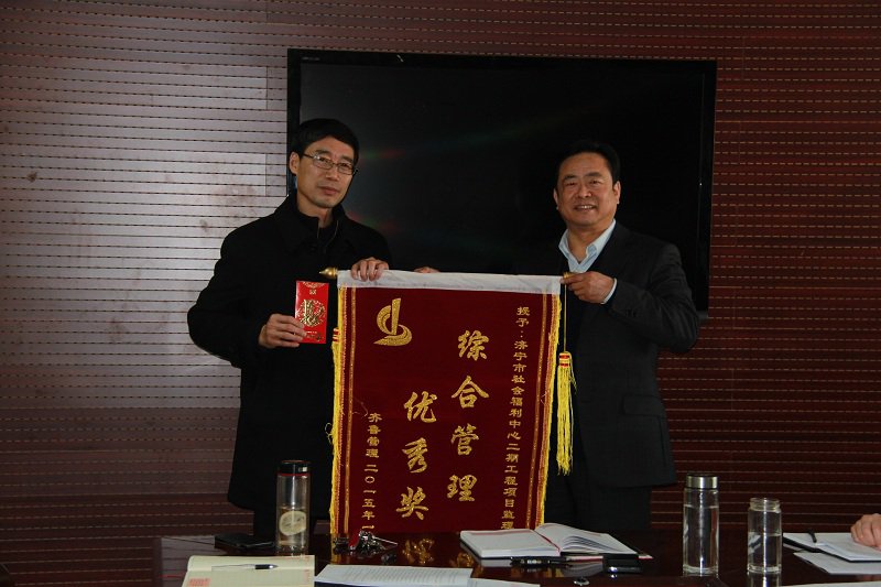 會上表彰了先進工作人物。高壯民項目部獲綜合管理優秀獎,王軍項目部獲監理文件資料管理優秀獎,并分別為他們頒發獎金授予錦旗。