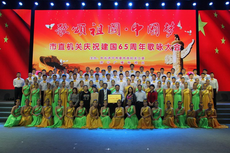 9月30日下午,由中共濟寧市委市直機關工委、濟寧廣播電視臺共同組織的“歌頌祖國·中國夢”慶祝建國65周年歌詠大會在濟寧體育館隆重舉辦。