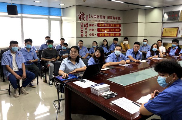 人力資源部褚鈺紅主任向新員工介紹了公司發展歷程、規章制度、業務范圍、“一二三五”的企業文化理念、公司經營情況及未來發展方向,并結合自身多年的工作經驗對新員工提出殷切希望:一是快速融入,完成角色轉變,盡快適應新的環境;二是腳踏實地,堅持學習,不斷提升自我;三是愛崗敬業,吃苦奉獻,提高業務水平;四是積極參與公司文化建設。