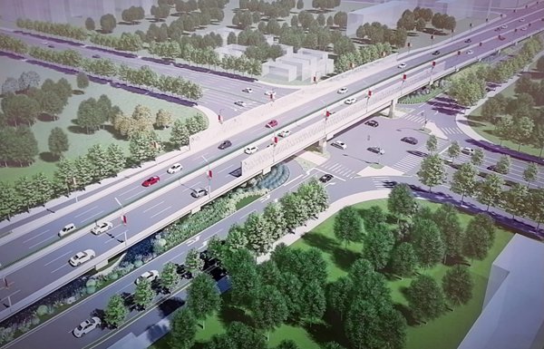 濟安橋路與車站西路路口立體化改造項目為主城區“井字形”連續流通道的重要一環,建成后將有效緩解該節點交通壓力,提升道路通行能力。項目位于濟安橋路與車站西路交叉點,主要對濟安橋路實施快速化改造,改造路段北起大悲庵路,南至景祥路,全長1100米,其中上跨橋長530米,橋上主路標準段寬度25.5米,設計規模為雙向6 車道、設計時速60公里/小時;地面輔路570米,標準斷面寬60.5米,設計規模為雙向4車道、設計時速40公里/小時,兩側單向非機動車道各4.5米、人行道各3.5米,同步實施景觀綠化等市政配套設施建設。