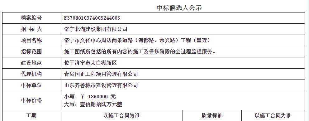 祝賀我公司濟寧市文化中心周邊兩條道路(河都路、常興路)工程(監理)中標