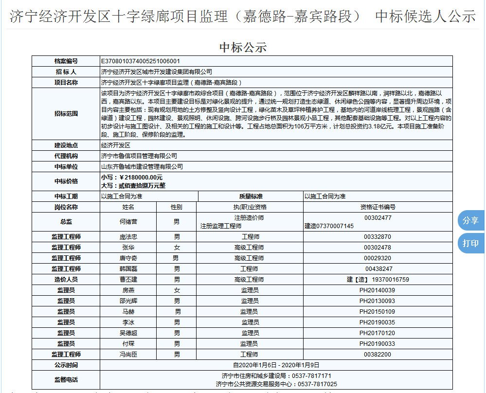 祝賀我公司濟寧經濟開發區十字綠廊項目監理(嘉德路-嘉賓路段)中標