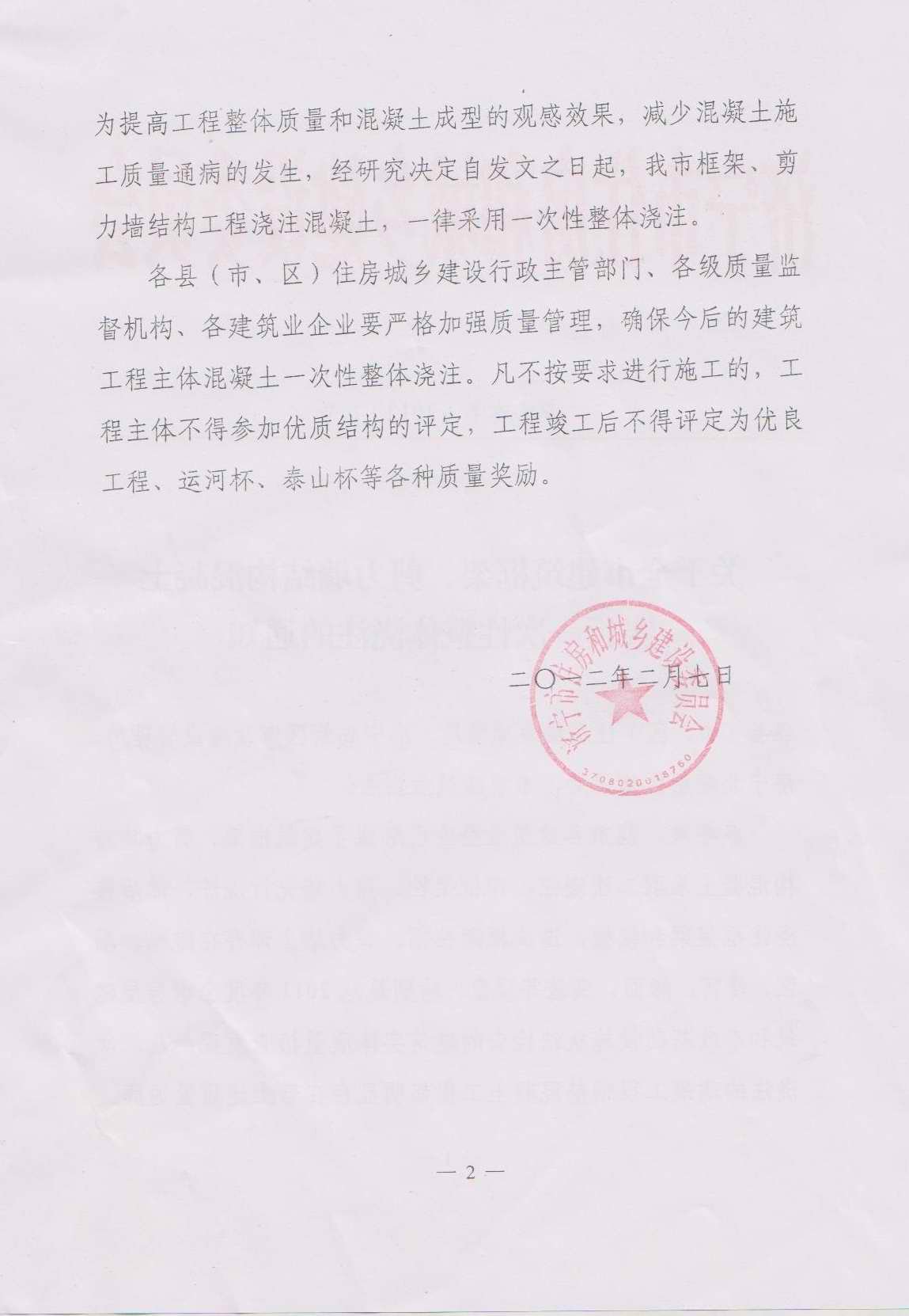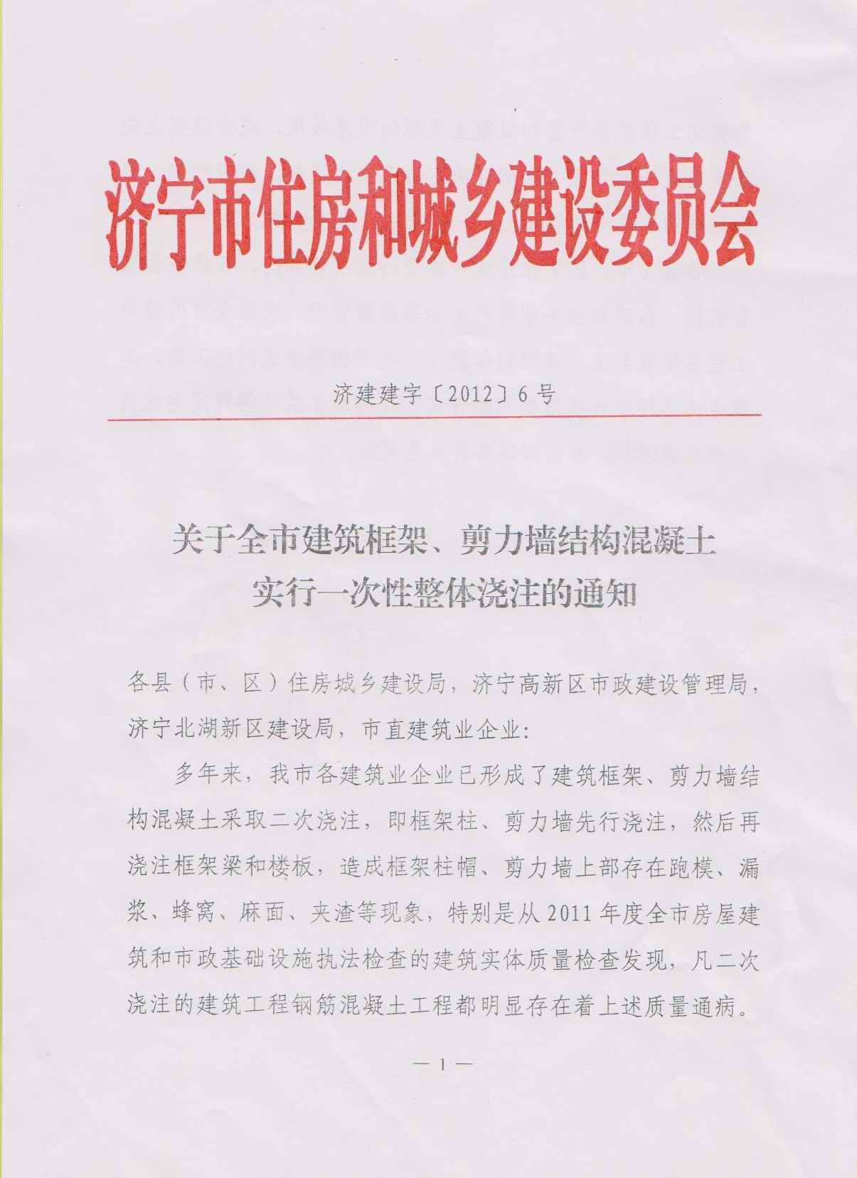 市建委關于全市建筑框架、剪力墻結構混凝土實行一次性整體澆注的通知